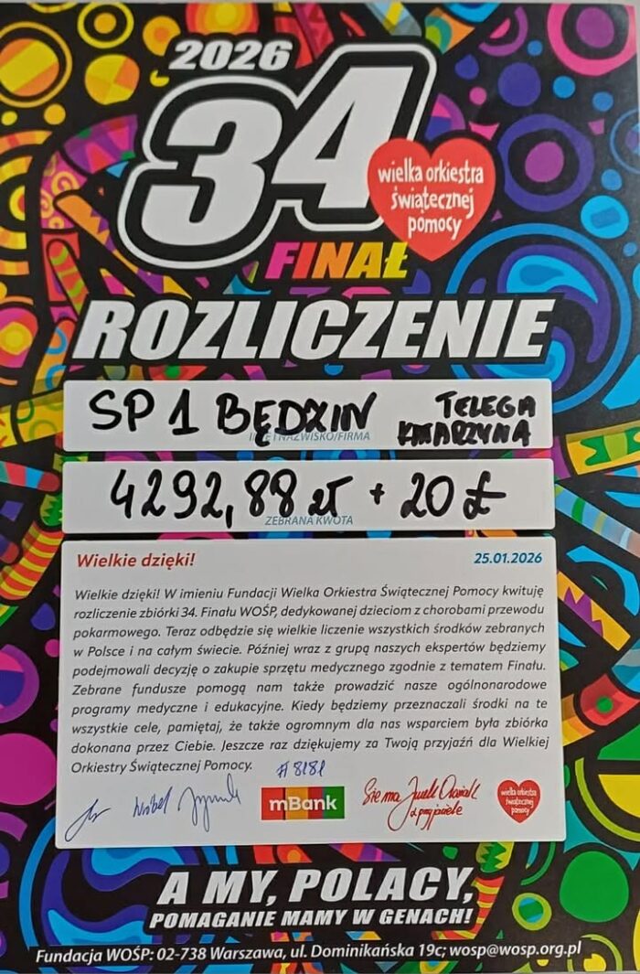 Z dumą informujemy, że udało nam się zebrać imponującą kwotę – aż 4292,88 zł!