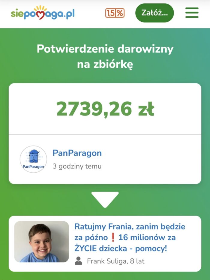 Nie ustajemy w działaniu – to naprawdę realna pomoc dla tego małego bohatera ♥️. Dziękujemy Wam za zaangażowanie i każdy dostarczony paragon!