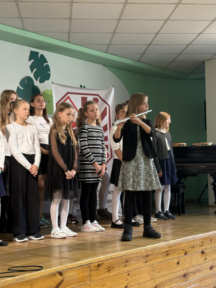 Szczególne gratulacje kierujemy do Madzi (5B) za przepiękną grę na flecie poprzecznym, Hani i Leny (6A) za wzruszające wykonania solowe, a także do Mateusza (6A) za znakomite prowadzenie koncertu.