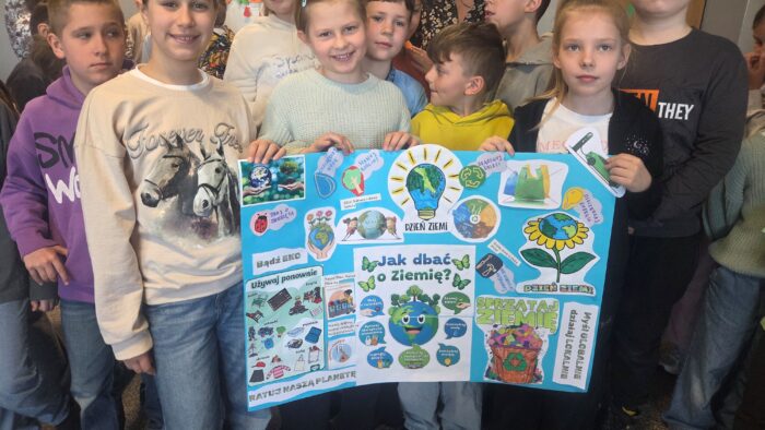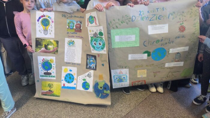 22. kwietnia uczniowie edukacji wczesnoszkolnej obchodzili Dzień Ziemi. Dzieci z klas I–III przygotowały plakaty tematyczne, by zwrócić uwagę na potrzebę dbania o środowisko naturalne. Podczas uroczystego apelu każda klasa zaprezentowała swoje prace, dzieląc się pomysłami i refleksjami na temat ochrony przyrody. Po części artystycznej uczniowie wzięli udział w wspólnym spacerze, który był okazją do obserwacji otoczenia i rozmów o tym, jak dbać o naszą planetę na co dzień.