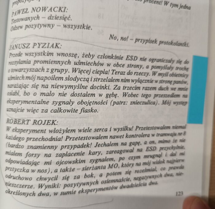Zaproponowałam uczniom wspólne wysyłanie sygnału ESD czyli Eksperymentalnego Sygnału Dobra. Nie jest to nadmiernie skomplikowane, chociaż może takie właśnie się wydawać. Polega na uśmiechaniu się do ludzi. Banał, prawda? Ale jaki skuteczny…