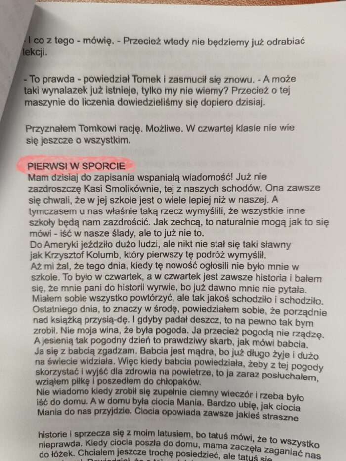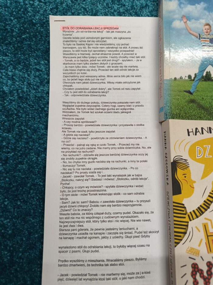 No to proszę bardzo – można sobie poczytać. Za darmo. Zamieszczam zdjęcie rozdziału „Stół do odrabiania lekcji”. A ponieważ moja książka gdzieś się zapodziała i nie mam do niej spontanicznego dostępu – tekst pobrałam z sieci. Tam też można sobie poczytać.
