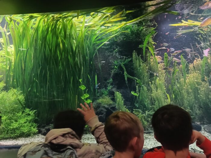 Pływające ryby – świnki. Rozpłaszczone płaszczki z paralizatorem w ogonie, pielęgnice pielęgnujące własne potomstwo w inkubatorze własnego pyszczka. Księżniczka z Burundii. Zestresowany kameleon. Kaktusy – „dziadki” o siwych włosach i uszy Shreka. Agama błotna, żółwiak chiński o mięciutkiej skorupce. Pyszczak hełmiasty. Muszlowiec.
