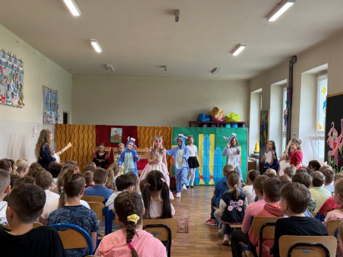 W dniu 17 kwietnia 2026 roku w naszej szkole uczennice z klas drugich i trzecich uczęszczające na zajęcia teatralne wystąpiły przed nauczycielami, dyrekcją szkoły oraz kolegami i koleżankami z klas I-III z przedstawieniem pod tytułem: „Księżniczka i herbatnik”. Dzień wcześniej wystąpiły przed swoimi najbliższymi, a 21 kwietnia wzięły udział w eliminacjach do XXVII edycji Miejskiego Przeglądu Małych Form Scenicznych w Będzinie.