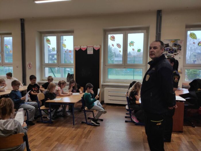 17 listopada 2025 r. w naszej szkole odbyło się ważne spotkanie edukacyjne. Uczniów klas drugich odwiedzili przedstawiciele Straży Miejskiej w Będzinie. Podczas zajęć goście opowiadali o istotnych zagadnieniach, takich jak asertywność, umiejętność kulturalnego odmawiania oraz znaczenie zasad w codziennym życiu. Uczniowie dowiedzieli się również, czym jest wolontariat oraz jakie zachowania można uznać za prospołeczne. Każdy uczestnik spotkania otrzymał „Kodeks Kumpla”, który zachęcał do dalszej dyskusji. Wydarzenie było okazją do rozmów o doświadczeniach z życia szkolnego i do refleksji nad właściwymi postawami.
