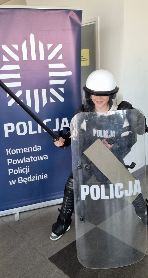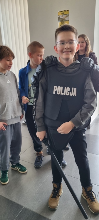 Na koniec uczniowie mieli możliwość poznać i przymierzyć elementy wyposażenia, niezbędne w codziennej służbie policjanta. Wizyta zapewne na długo pozostanie w pamięci uczniów. Być może spotkanie z policjantami będzie dla nich inspiracją do wyboru w przyszłości takiego zawodu.