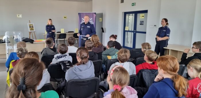 W piątkowe przedpołudnie, będzińska Komenda Policji gościła uczniów z klasy 6A. Młodzież miała okazję wysłuchać bardzo ciekawej prelekcji na temat odpowiedzialności karnej nieletnich. Druga część spotkania dotyczyła odblasków. Zaakcentowano tutaj, jak olbrzymie znaczenie dla naszego życia mają elementy odblaskowe. Prowadzący policjant zachęcał uczniów, by sami byli ambasadorami bezpieczeństwa – przypominając rodzicom, dziadkom i znajomym o noszeniu odblasków.