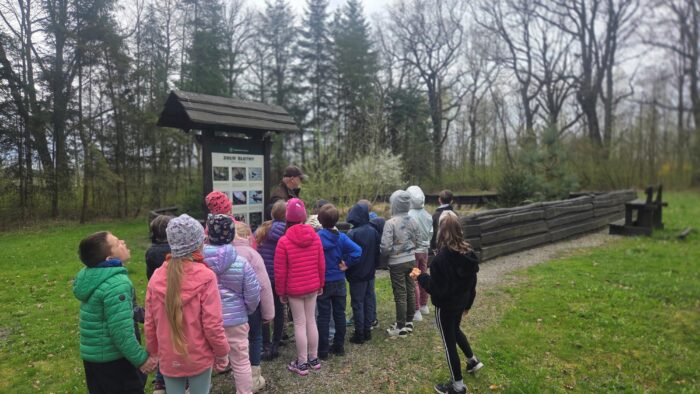 Spacer ścieżką przyrodniczą umożliwił bezpośrednią obserwację żółwi wodnych wygrzewających się na brzegu stawu. Uczniowie poznali także znaczenie naturalnego „bałaganu” w lesie, zobaczyli najstarsze gatunki drzew oraz usłyszeli ciekawostki o łosiach, m.in. o tym, jak wysoko potrafią skakać.