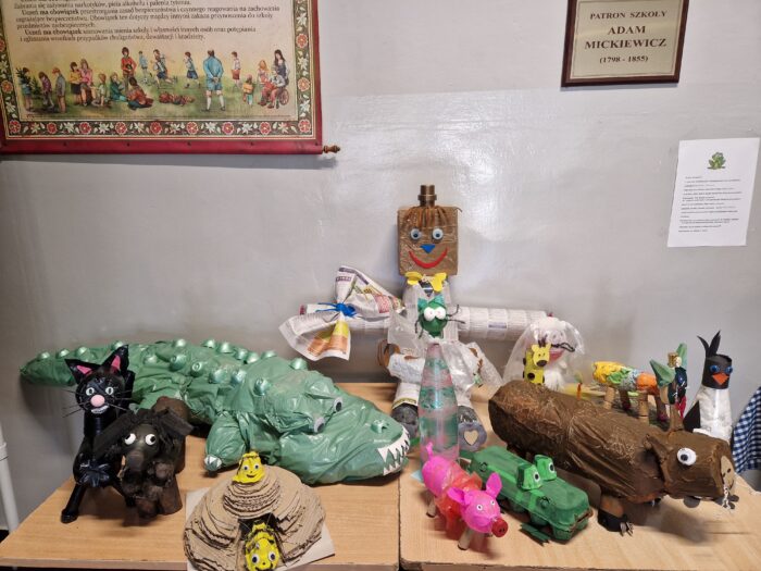 W związku ze Światowym Dniem Recyklingu, w szkole ogłoszony został konkurs na przygotowanie „zwierzaka” z recyklingu. Poniżej prezentujemy wyniki:
